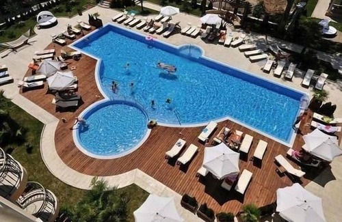 Apartment 216 in the Harmony Suites II is designed for 4 people (a double bed + a sofa bed). It is located on the first floor (50 m2) and has a view of the pool. Apartment decorated in a modern style with air conditioning. It has a balcony, an equipped kitchenette with household appliances (including a washing machine and a toaster) and a bathroom with a shower. The whole is decorated in an elegant style. The apartment will definitely meet the expectations of the most demanding customers. GPS coordinates for drivers: 42.707243, 27.714728 ?; + 42 ° 42 '26.07 ", + 27 ° 42' 53.02" Harmony Suites II is located a short distance from the beach (a few minutes walk) in a quiet and peaceful place with easy access to all attractions offered by Sunny Beach. The complex has a restaurant, swimming pool and free parking. An ideal place to relax with family and friends.