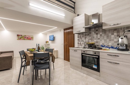 La Casetta di Mari is a practical loft located in Villabate, in the province of Palermo. It is the perfect place for those seeking a cosy and modern stay near the beautiful city of Palermo. Ideal for couples, tourists, or professionals on a business trip. Located in Villabate, near the motorway junction, and in the immediate vicinity of Palermo city centre. The loft is air-conditioned, equipped with Wi-Fi connection, smart TV, sofa bed, kitchenette, bathroom with shower and laundry. Going up a practical staircase you can reach the sleeping area with a double bed and wardrobe.
