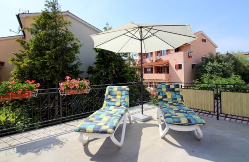Holiday apartment with large balcony is located in Porec. Holiday apartment with large balcony provides accommodation, featuring Barbecue/Outdoor Cooking, Child Friendly, Kitchen, among other amenities. This Apartment features Barbecue/Outdoor Cooking, Child Friendly, Kitchen, to make your stay a comfortable one.