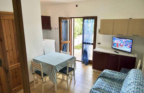 The holiday apartment is furnished in a modern and functional style. The property is located in a holiday home area, in the town centre. Available for use: terrace.LocationSan Teodoro. The landlord does not live in the house or on the property. The flats are located in San Teodoro, between 200 m and 1700 m from the sea and between 300 m and 1200 m from the centre. Access is directly from the main road. Parking is available on the property. SpecialThere is no heating. TV reception takes place via antenna. TV channels only in local language.For your safety, the accommodation is equipped with CO2 detector, smoke detector and fire extinguisher. Dogsallowed, EUR 50.00/pet per stay. DistancesShopping 300 m, restaurant 200 m, town center 300 m. airport in Olbia 27 km. discotheque, doctor, pharmacy, bank each 1200 m in San Teodoro. In summer: Bathing possibility 1,7 km in San Teodoro (beach 1,7 km in San Teodoro). DivisionHoliday apartment, 1 floor, 2 rooms (including 1 bedroom), 40 sqm, in total 4 beds (including 2 additional beds), on request additionally 1 child up to 2 years in a baby cot. RoomThe entrance to your holiday apartment leads directly into the living room. The apartments can be located on the ground floor or on the first floor. Living room with 2 additional beds on double sofa bed, 1 baby cot, TV and dining area (4 seats). Bedroom with 1 double bed. Cooking nook in the living room with gas stove (4 flames), extractor hood, fridge and coffee machine. Bathroom with washing machine, shower, 1 washbasin, WC and bidet. Terms of lease and pricesIncluded in the priceparking place, electricity, gas, water. Side costs-Additionally(Payable when booking)/final cleaning obligatory 100 € per object per stay (19.04.25-01.11.25, 18.04.26-31.10.26).Costs on the spot:/Obligatory:final cleaning of the kitchen (if not performed by the tenant) 25 € per object per stay. local tax by local tariff (if charged).On request:Laundry package (hand towels, bed linen - please order at booking) 15 € per person per first time use and changing. baby cot – please order at booking 5 € per bed per day. high chair - please order at booking 3 € per piece per day.Deposit:EUR 200,-/object.