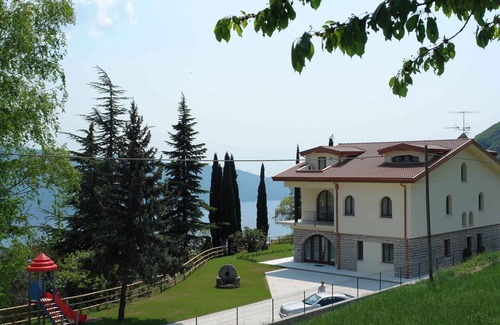 The holiday apartment is located in an apartment house built in 2009 and is furnished in a modern and functional style. The property is located on the outskirts. Also due to the view over the lake from the property and its quiet and sunny location the domicile is popular. Available for shared use: parasol, sun lounger and children's playground. All facilities of Residence Ruculi can be used (about 3 km): Laundry, restaurant, outdoor pool, children's pool and an indoor pool, sauna and gym. High chair and cot on availability upon reservation.LocationTignale, 450 m above sea level. The holiday apartement is located on a 2500 sqm enclosed garden plot with meadow, flowers, shrubs and trees. The landlord does not live in the house or on the property. The apartment GAR TIG 006 (8 people) and GAR TIG 007 (6 persons) are located in the same facility. Tignale is a consortium of six villages that are widely spreaded on a plateau above the western lake. This town is the ideal place for total relaxation, away from the crowds at the lake. Access is via a side road (rubble or gravel, length 5 m). Parking (for 10 cars) is available on the property. Specialcentral heating.Facilities: baby cot, high chair, internet access (WLAN), safe and washing machine. TV reception takes place via satellite.For your safety, the accommodation is equipped with CO2 detector and fire extinguisher. PoolAll pools are available for shared use. Outdoor pool. Children's pool. Indoor pool. Dogsallowed, EUR 5.00/pet per day. DistancesShopping 1000 m, restaurant 1000 m, town center 1000 m. railway station in Desenzano del Garda 50 km. indoor swimming pool in Ruculi 3 km. Limone 20 km. Tourists physician from June to September in Gardola (otherwise Gargnano). In summer: Lake Garda 10 km in Porto di Tignale (beach 10 km in Porto di Tignale featuring sand and stones). golf in Bogliaco di Gargnano 12 km. tennis in Gardola 1000 m. boat rental, boat launch each 6 km in Gargnano. water sports in Porto di Tignale 10 km. horse riding in Prabione 2 km. Free shuttle bus to the beach from June to early September. The lake has a various entertainment program for all ages, such as mountain biking, windsurfing, sailing, horseback riding or hiking. Free climbing and paragliding are possible too. DivisionHoliday apartment, 1 floor, 3 rooms (including 2 bedrooms), 65 sqm, in total 6 beds (including 2 additional beds). RoomThe entrance to your holiday apartment is located on different floors. Bedroom with 1 double bed. Bedroom with 2 single beds. Living/bedroom with 2 additional beds on couch/sofa and TV. Cooking nook in the living & bedroom with dining area, gas stove, extractor hood, fridge (icebox), microwave and coffee machine. Bathroom with shower, 1 washbasin, WC, bidet and hairdryer. Terms of lease and pricesIncluded in the priceinternet access, dish towels, parking place, safe, electricity, gas, water, heating, local tax (under 14 years), bed linen (first usage), hand towels (first usage), Wireless Internet access. Side costs-Costs on the spot:/Obligatory:final cleaning 50 € per object per stay. local tax by local tariff (if charged).On request:high chair 5 € per piece under 3 years per day. children bed 5 € per bed under 2 years per day. Interim cleaning 30 € per object based on usage. bed linen 10 € per person per change. hand towels 5 € per person per change.Deposit:EUR 50,-/object.