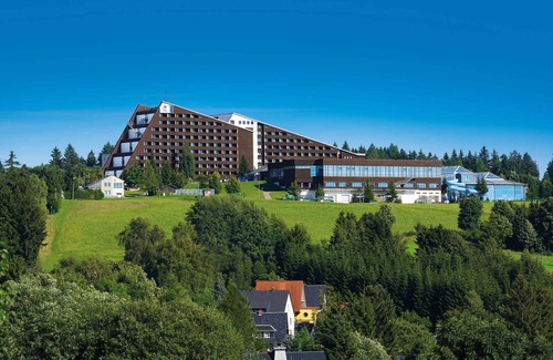 The holiday apartment is located in an apartment house and is furnished in a functional style. The property is located in a holiday resort. Available for use: children's playground.Holiday resortlobby, reception, cash machine, bar, coffee shop and internet (WLAN). left-luggage office LocationThe holiday apartement is located in a holiday complex. Parking is available in a garage and on the property. Specialcentral heating.Facilities: baby cot, high chair, internet access (WLAN) and phone. PoolAll pools are available for shared use. Outdoor pool. Children's pool. Indoor pool. Outdoor pool 576 m², indoor pool 1100 m² WellnessIn the complex: whirlpool, steam bath, sauna, solarium and massage. LeisureIn the complex: tennis, table tennis, billiards and bike rental. Animation for children. Size of wellness area 1600 m², Finnish sauna, infrared cabin, relaxation room, beauty center for a fee, toboggan rental - optional for a fee on site, ski service in the house - optional for a fee, volleyball Dogsnot allowed. DistancesShopping 1000 m, restaurant 650 m, town center 1000 m. railway station in 100 m. airport in Dresden 175 km. In winter: Ski lift 100 m. DivisionHoliday apartment, 1 floor, 2 rooms (including 1 bedroom), 33 sqm, in total 4 beds (including 2 additional beds). Room Bedroom with 1 double bed. Living/bedroom with 2 additional beds on couch/sofa and TV. Kitchenette with fridge, coffee machine, electric kettle and Gas or electric stove, basic kitchen equipment. Bathroom with shower, WC and hairdryer. Credit cardsVisa, MasterCard, American Express. Terms of lease and pricesIncluded in the pricehigh chair, internet access, electricity, water, heating, final cleaning, bed linen, hand towels. Side costs-Costs on the spot:/Obligatory:local tax by local tariff.On request:garage 10 € per car per day. parking place 7 € per car per day. baby cot – please order at booking 15 € per bed per stay. For a fee: sauna, whirlpool, table tennis, tennis, billiard, solarium.Deposit:No deposit.