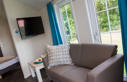 In our own, completely new area of our campsite, you can spend your holiday in lovely, comfortable chalets. The chalet park has its own driveway and can be used all year round. Accommodates up to four adults or two adults and 2 children. Living room with kitchen, seating and entertainment media. Two bedrooms. Equipped with a double and bunk bed. In the double room entertainment media. Large bathroom incl. Shower, bath with whirlpool function and infrared sauna. Outside there is a parking space for your car and the terrace invites you to linger. Sheets and towels are provided.
