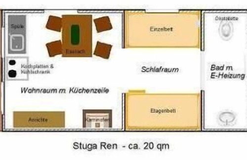 General: 2nd single bed; Bathroom: 1; Bicycle hire: 0.00 km; Plot size: 20000 m²; Year of renovation: 2014; Bedroom; Living room: Bunk bed(s); Bath/WC: Toilet; Cooking: 2-plate cooker; Coffee machine; Refrigerator; Toaster; Other: Angler friendly; View; Mountain hut; Pets allowed: max. 1; Heating; No Internet; Non-smoking property; Washing machine; Distances (as the crow flies, approx.): Distance mountain railway: 25.00 km; Distance cafés/ restaurants: 17.00 km; Distance food market: 17.00 km; Distance lake: 0.10 km; Distance cross-country skiing: 25.00 km; Distance to railway station: 17.00 km; Distance to airport: 120.00 km; Near ski: 1 m;