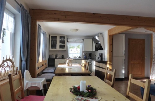 Inside the house, you will find well thought-out furnishings that leave nothing to be desired. The night-time electric heating provides cosy warmth in all rooms, while the fireplace is the focal point of social gatherings. A fully equipped kitchen with dishwasher, coffee machine and kettle is available for your exclusive use and makes self-catering a pleasure. A washing machine also makes your stay easier so that you can concentrate fully on experiencing and enjoying your holiday.
