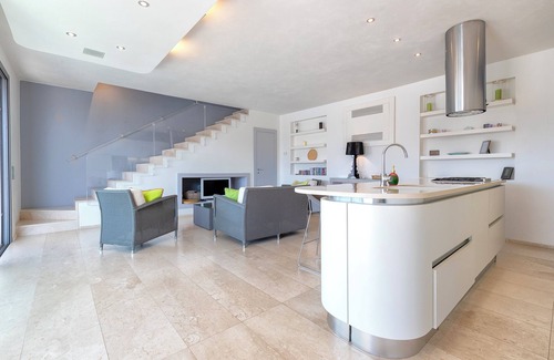 Living area and kitchen: A convivial open space with a fully equipped kitchen, featuring modern appliances and a central island perfect for cooking and entertaining.