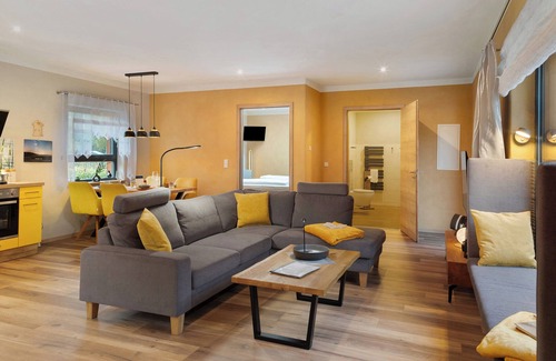 In the Westhavelland Nature and Star Park, you can relax in a quiet location directly on Lake Lochow and unwind. You can watch stars and planets right from your bed or enjoy the impressive night sky with the shining Milky Way from the cozy living room with panoramic windows and comfortable cushions. The modern and lovingly furnished holiday home offers 80 m² of living space for up to four people, with two bedrooms, an open kitchen in the living area, and a spacious bathroom. The large, covered terrace with dining table and lounge furniture invites you to linger. The lake with a swimming area is only 30 meters away. The house is barrier-free and also suitable for guests with disabilities. Barrier-free equipment such as grab rails at the toilet, care bed, patient lift, shower wheelchair, and shower chair are available on request and can be provided for an additional fee.