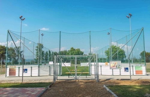 The detached holiday home is furnished in a functional style. The property is located in a holiday home settlement, in the town centre. Also due to its quiet and sunny location the domicile is popular. Available for your exclusive use: sunbathing lawn, parasol, children's playground, barbecue facilities, terrace and garden furniture.LocationBalatonmáriafürdő. The holiday home is located on a 400 sqm enclosed garden plot with meadow and trees, bordered by a fence and a hedce. The landlord does not live in the house or on the property. Access is via a side road. Parking (for 2 cars) is available on the property. SpecialFacilities: baby cot and high chair. TV reception takes place via satellite. Dogsnot allowed. DistancesShopping 100 m, restaurant 50 m, town center 300 m. discotheque, bank each 300 m in Balatonmáriafürdő. thermal bath in Marcali 12 km. Railway line 30 m. In summer: Balaton 200 m in Balatonmáriafürdő (beach 500 m in Balatonmáriafürdő featuring meadow). DivisionHoliday home, 1 floor, 4 rooms (including 3 bedrooms), 100 sqm, in total 6 beds. RoomThe entrance to your holiday home is at ground level and leads directly into the living room. Living room with sitting area, TV, dining area (6 seats) and access to the terrace (garden furniture, 1 table, 6 chairs). Bedroom with 1 double bed. 2 bedrooms each with 2 single beds. Kitchen with dining area (3 seats), gas stove, fridge (icebox), microwave, coffee machine, electric kettle and dryer. Bathroom with bathtub with shower facility, shower and 1 washbasin. Separate toilet with WC. Terms of lease and pricesIncluded in the pricebabycot, baby cot, parking place, electricity, gas, water, bed linen. Side costs-Costs on the spot:/Obligatory:final cleaning 35 € per object per stay. local tax by local tariff.Deposit:EUR 100,-/object