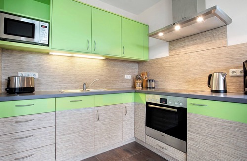 The holiday home boasts a private terraced outdoor area with a garden and barbecue. This is the perfect spot to dine outside with your loved ones.