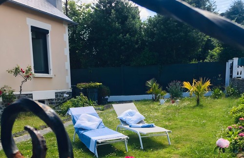 Welcome to Villa GoALL'O on the Saint-Brieuc bay, Brittany. Located in a quiet residential area near the sea, harbors, beaches, and the GR34 coastal path, this holiday home accommodates 2 to 7 guests with all amenities. The villa was renovated in 2022 and features a stylish, modern decor for a relaxing atmosphere. The spacious living area of over 40 m² includes an open-plan kitchen, living room, and dining area. There are three charming bedrooms: on the ground floor, a room with a queen-size bed (160 cm); upstairs, a master bedroom with a double bed (140 cm) and a single bed (90 cm) with a partial sea view; and a children's attic room with two single beds (90 cm), games, and books. Two shower rooms with two WCs (one separate), Wi-Fi, and a flat-screen TV are provided. Original wood floors and staircase add character. A laundry room with washer-dryer, a garden-level cloakroom for beach or fishing gear, and baby equipment (cot, high chair, bath) are available on request. The private, enclosed 450 m² garden offers terraces, barbecue, sun loungers, parasols, and outdoor furniture. Private parking in the courtyard, garage for bikes and leisure or water sports equipment, and free street parking. Five beaches, three harbors, GR34 trail, water sports center, tennis courts, cinema, and playground are nearby. Restaurants and entertainment from 500 m. Self check-in possible. Events not allowed. Beds are made on arrival. Towels available for an extra charge. Final cleaning available for an extra charge. Kitchen basics, welcome hygiene kit, and household linen are provided.