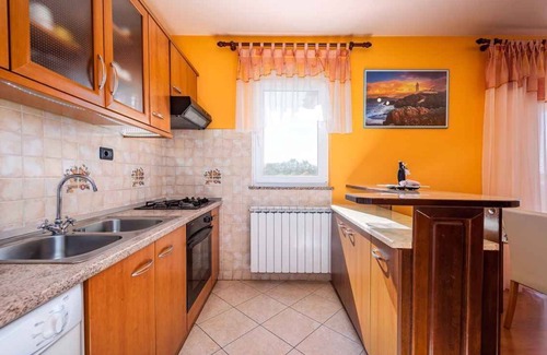 The holiday home built in 1995, was renovated in 2012 and is furnished in a typical country style. Available for your exclusive use: children's playground, swing, garden shower, barbecue facilities and garden furniture.LocationPazin, district Bakši. The holiday home is located on a 800 sqm enclosed garden plot with meadow and trees. The landlord does not live in the house or on the property. Property area: 800 m² - youth groups not permitted Access is via a side road (asphalted). Parking (for 4 cars) is available in a carport. Specialair conditioning, central heating.Facilities: internet access and washing machine. TV reception takes place via satellite. PoolAll pools are available for exclusive use. Outdoor pool (usable from mid May to end of September, 8 m x 4 m, depth 1,5 m). Leisurebilliards and darts. Dogsnot allowed. DistancesShopping 4 km, restaurant 4 km, town center 4 km. railway station in Pazin 5 km. airport in Pula 30 km. In summer: Bathing possibility (beach 22 km in Pazin). DivisionHoliday home, 2 floors, 6 rooms (including 5 bedrooms), 112 sqm, in total 10 beds. RoomThe entrance to your holiday home is located on the ground floor. Living room with TV, fireplace, DVD player, CD player, dining area and access to the balcony access to the terrace (covered, garden furniture, parasol). Bedroom with 1 bunk bed. 4 bedrooms each with 1 double bed. Cooking nook in the living room with dining area, gas stove, electric stove, oven, dishwasher, fridge (15 l, icebox), microwave and coffee machine. Bathroom with shower and WC. Bathroom with bathtub, WC and bidet. Terms of lease and pricesIncluded in the priceinternet access, dish towels (06.01.25-01.01.28), air conditioning (06.01.25-01.01.28), electricity (06.01.25-01.01.28), gas (06.01.25-01.01.28), water (06.01.25-01.01.28), heating (06.01.25-01.01.28), final cleaning (06.01.25-01.01.28), bed linen (06.01.25-01.01.28), hand towels (06.01.25-01.01.28), bathing towels (06.01.25-01.01.28). Side costs-Additionally(Payable when booking)/local tax.Costs on the spot:/Obligatory:registration fee 5 € per person per stay (06.01.25-01.01.28).Deposit:EUR 250,-/object.