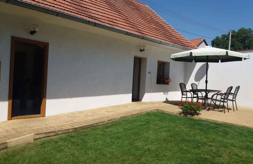 The detached holiday home was renovated in 2001 and is furnished in a typical country style. Also due to its quiet and sunny hillside location at the edge of the forest the domicile is popular. Available for your exclusive use: parasol, barbecue facilities, pavilion and garden furniture. Cot - free on request.LocationHurka/Cesky Budejovice. The holiday home is located on a 2000 sqm enclosed garden plot with meadow. The landlord does not live in the house or on the property. Access is via a side road (asphalted). Parking (for 5 cars) is available in a garage and on the property. Specialcentral heating (gas).Facilities: baby cot, internet access (WLAN) and iron. TV reception takes place via antenna, satellite. PoolAll pools are available for exclusive use. Outdoor pool (usable from early June to end of August, diameter 3.6 m, depth 1 m). Leisuretable tennis. Dogsallowed, EUR 5.00/pet per day. DistancesShopping 1000 m, restaurant 1000 m, town center 1000 m. railway station in 1000 m. thermal bath in 25 km. indoor swimming pool, sauna, discotheque each 9 km. Railway line 1000 m. In summer: Bathing possibility (beach 40 km in Suchdol). tennis in 9 km. golf, horse riding each 15 km in Hluboka nad Vltavou. diving, boat rental, boat launch each 60 km in Lipno nad Vltavou. fishing in Vidov 6 km. In winter: Ski area 60 km in Lipno nad Vltavou (Kramolin). ice skating in 9 km. DivisionHoliday home, 1 floor, 3 rooms (including 2 bedrooms), 95 sqm, in total 6 beds (including 2 additional beds), on request additionally 1 child up to 2 years in a baby cot. RoomThe entrance to your holiday home is at ground level and leads directly into the hallway with wardrobe. Bedroom with 1 double bed. Bedroom with 2 single beds. Living/bedroom with 2 additional beds on couch/sofa, sitting area, TV, fireplace, radio and access to the terrace (12 sqm). Cooking nook in the living & bedroom with dining area (6 seats), electric stove, oven, fridge, microwave, coffee machine and electric kettle. Bathroom with bathtub, washing machine, shower and 1 washbasin. Separate toilet with WC. Terms of lease and pricesIncluded in the priceOutdoor pool, internet access, parking place, water, pool, bed linen (first usage), Wireless Internet access. Side costs-Additionally(Payable when booking)/baby cot – please order at booking on request per bed per week.Costs on the spot:/Obligatory:electricity 0,50 € per kilowatt hour based on usage. gas 5,40 € per cubic meter based on usage. chimney wood 2 € based on usage. final cleaning (if not performed by the tenant) 30 € per object per stay. hand towels to bring along. local tax by local tariff.Deposit:EUR 150,-/object