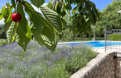 The detached holiday home is furnished in a modern and rustic style. The property is located in a residential area, on the outskirts. Also due to its quiet and sunny location the domicile is popular. Available for your exclusive use: sunbathing lawn, parasol, sun lounger, children's playground, swing, garden shower, barbecue facilities, terrace, pavilion, garden furniture, Hollywood swing and courtyard.LocationDonji Proložac. The holiday home is located on a 900 sqm enclosed plot with meadow, flowers, shrubs and trees, bordered by a fence. The landlord does not live in the house or on the property. Access is via a side road (asphalted). Parking (for 2 cars) is available in a carport. Specialair conditioning, central heating.Facilities: baby cot, internet access (WLAN), iron, washing machine and dryer. TV reception takes place via satellite.For your safety, the accommodation is equipped with first aid kid. PoolAll pools are available for exclusive use. Outdoor pool (usable from early May to mid October, 4 m x 8 m, depth 1,7 m). Leisure5 bicycles, fitness equipment and table tennis. Dogsnot allowed. DistancesShopping 1000 m, restaurant 1500 m, town center 1500 m. airport in Brac 40 km. doctor, pharmacy each 2 km in Donji Prolozac. discotheque in Glavina Donja 2 km. cinema, bank each 5 km in Imotski. Airport 90 km in Split. In summer: Adriatic Sea 30 km in Baska Voda (beach 30 km in Baska Voda featuring gravel and stones). water sports in Baska Voda 30 km. tennis in Glavina Donja 3 km. DivisionHoliday home, 2 floors, 5 rooms (including 4 bedrooms), 200 sqm, in total 8 beds. RoomThe entrance to your holiday home is located on the ground floor, is at ground level and leads directly into the hallway with wardrobe and doors to all rooms.Ground floor: Living room with access to the terrace (30 sqm, covered, garden furniture). Bedroom with 1 double bed. Kitchen with dining area, electric stove (ceramic hob, 1 plate), oven, dishwasher, fridge (icebox), microwave, coffee machine and electric kettle. Storeroom. Bathroom with shower, 1 washbasin, WC, bidet, hairdryer and window. 1st floor: Bedroom with 1 single bed, 1 bunk bed and sitting area. Bedroom with 1 double bed, sitting area, TV and access to the balcony (8 sqm). Bedroom with 1 single bed, (only suitable for children) and sitting area. Bathroom with whirlpool, shower, 1 washbasin, WC, bidet, hairdryer and window. Terms of lease and pricesIncluded in the priceOutdoor pool, internet access, baby cot, bicycle, air conditioning, parking place, electricity, water, bed linen, sunloungers, Wireless Internet access. Side costs-Additionally(Payable when booking)/final cleaning obligatory 125 € per object per stay. local tax.Deposit:EUR 200,-/object.