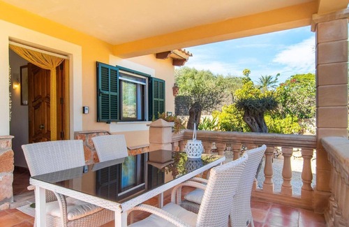 The house is lovingly furnished and has a bright and practic interior. It has two double bedrooms and a bathroom and accommodates 4 people. A beautiful stone-built arch separates the completely fitted spacious living-in kitchen from the living area with fireplace. In front of the house there is a cosy veranda with dining table and four chairs and a comfortable lounge corner, from where you can catch a glimpse of the sea. Behind the house, with direct access to the kitchen, there is a spacious garden terrace with dining table and 6 chairs and a BBQ. All around there are pleasantly landscaped Mediterranean gardens, weekly maintained by Juanito himself. The bays Es Caló des Moro and S’Almunia and also to the beach of Cala Llombards are within easy walking distance.