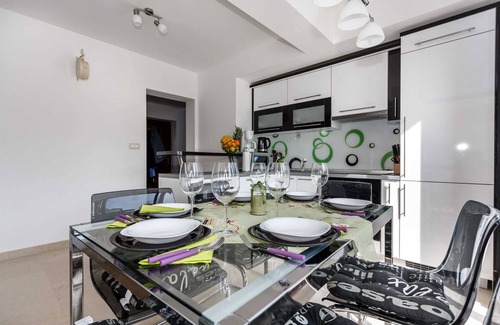 Beautiful luxury holiday house for 6-8 persons, with swimming pool, located near Malinska on the island of Krk. It has threebedrooms and threebathrooms, kitchen and living room, spread over 2 levels. The house is very tastefully furnished, fully equipped andair-conditioned. An ideal choice for families with children due to the very peaceful and private location.Free WiFi. Pets are warm welcomed. Pool is open from 01.05.-15.10.