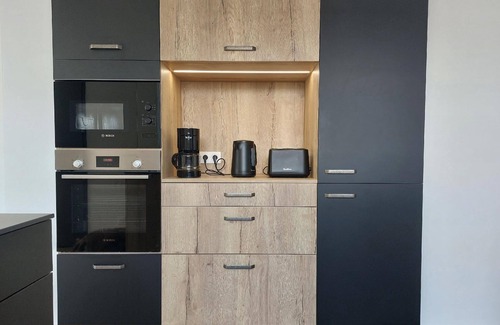 Kitchen: Coffee capsule machine; Coffee machine; Dishwasher; Freezer; Fridge; Induction stove; Microwave; Oven; Toaster; Water boiler