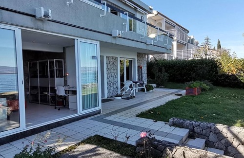 Semi-detached holiday house for 6 people, located in Vantačići on the promenade by the sea. It is only 20 meters away from the beach! With an area of 140 m2 it consists of three bedrooms, a spacious living room with dining area, kitchen, two fully equipped bathrooms and one additional toilet. Guests have at their disposal internet, SATTV, two air conditioning units and two covered parking spaces in the yard. The landlord lives in one part of the property while renting out another part of the property.
