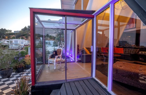 With a newly furnished living room, new outdoor cushions, bedding and towels, the Sunset Zen Villa matches bohemian chic with comfort and style. The Villa's unique architectural style, jetliner views and wrap around decks, terraces and gardens, create the quintessential California / Hollywood Hills indoor/outdoor lifestyle retreat.