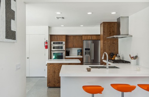 Based on the information received from our partner, the Palm Springs house has not specified they are wheelchair accessible. Likewise, there is not an elevator specified as being available at the property. Specific accessibility details may be addressed in the property details section of this page.