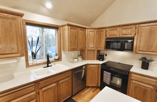 This spacious 4-bedroom home sleeps up to 8 guests and offers a serene atmosphere for both relaxation and productivity. Enjoy a huge yard that wraps around the house, maintained effortlessly by our robot lawn mower ‘Hubert’. With plenty of windows flooding the space with natural light, you'll find it easy to unwind or work from home in comfort. The home also features a keyless entry front door and 3-car garage with remote access. For outdoor enthusiasts, the scenic Dishman Hills Natural Area is just a close distance away, offering endless opportunities for walking, hiking, biking and more. Whether you're staying for work or leisure, this home provides the perfect balance of peaceful living with central access to all Spokane has to offer.