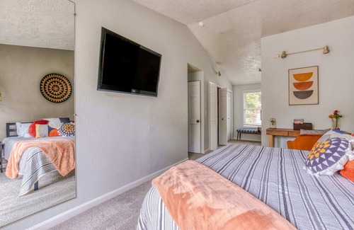 Welcome to Monmouth Family Retreat by Gather! Enjoy this vibrant 4-bedroom, 2.5-bathroom home situated in the quaint town of Monmouth on a lovely ½ acre property in a peaceful and quiet neighborhood. With warm, creative, and contemporary interior design and furnishings, and quick and easy access to everything around town, this home offers guests a fun-filled vacation for the entire family.
