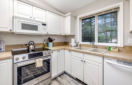 Located less than a block away for a leisurely stroll on a semi-private beach, this two-story home puts you in a prime location! Start your day with morning coffee on the furnished lower-level deck or the upper-level balcony. When you return home from a day of exploring, cozy up by the gas fireplace with a good book or for cocktails and chit-chat. In the evenings, prepare meals in the well-equipped kitchen and share them at the adjacent expandable dining table that seats eight. End your days with a movie night on the living room TV. Additional amenities you can find here include a beach wagon, sand toys, four adult camper chairs, a Columbia cooler bag, beach towels, a Solo Stove firepit with kindling bins, and S'mores sticks - all stored in the garage.