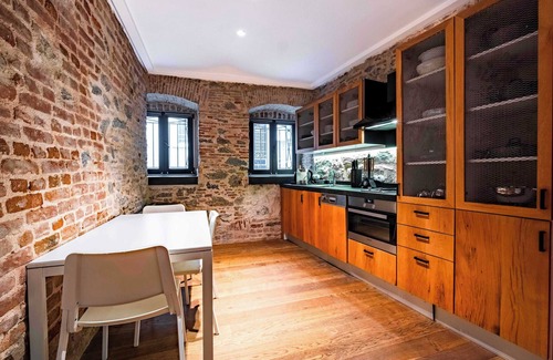 Backed by Homie Suites, the company with the highest guest satisfaction in Istanbul. Located just off Istiklal Avenue, our apartment is in a historic building with over a century of heritage. Fully renovated in 2020, it blends charm with modern systems. This two-story home features a private ground-floor terrace for your enjoyment, while the lower bedroom offers a peaceful retreat with complete privacy.