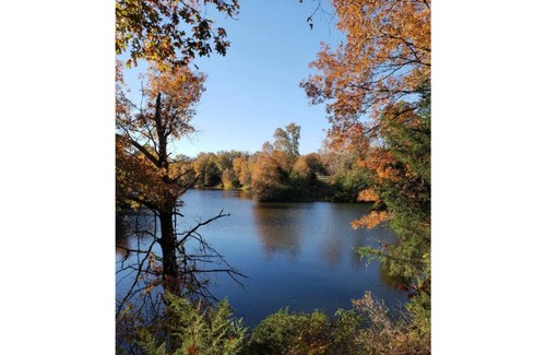 Escape to this quiet, seemingly remote country getaway nestled down a peaceful, tree-canopied lane. Relax and unwind amid big woods, creeks, woodland trails, complete with a very large strip pit lake, and smaller lake just mere feet from your private cabin. Use our large covered dock, kayaks, paddle boat, canoe and explore all this huge waterscape and land have to offer. All manner of Missouri wildlife reside here.