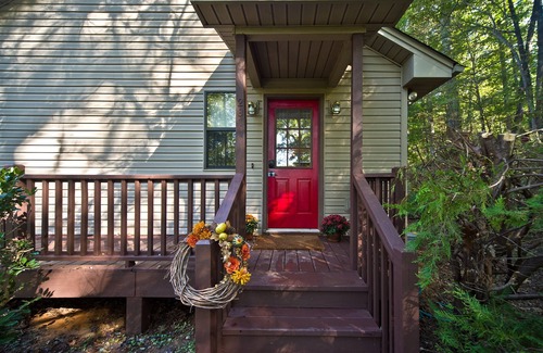 Our three-bedroom two bath country cottage has all the modern conveniences to make your stay comfortable and all the charms of a mountain getaway. If you are a couple looking to get away from it all or a multi-generational family having a holiday get together, Honeycrisp Cottage at Rumbling Bald Resort is right for you! The open plan living area has a fully stocked newly renovated kitchen for preparing great meals for family and friends. We have all the small appliances, pots, pans, cutlery, dishes and glasses to prepare a holiday meal or an intimate dinner for two. In the summer, spring and fall you will find pots filled with fresh herbs that are there for the picking! We have a lovely dining area with a farmers table and a comfy living room with a gas fireplace, brand new flat screen TV for viewing satellite channels, Netflix, Amazon or bring your own films to play on the new DVD player. There are three bedrooms; a master suite with King-size bed and private bath on one side of the house and on the other side a bedroom with a queen-size bed and a bedroom with two twin beds and a shared bathroom with shower and tub. We have stocked the house with books, games, puzzles and DVDs for those nights you just want to stay in. There is a secluded deck off the living room with a gas grill and outdoor table for dining in the warmer weather. The house is fully air conditioned (new air conditioner just installed) in the summer (although you will want to throw the windows open for the crisp cool summer evenings) and well heated for the winter. This is a four seasons rental, we are set up comfortably for 6 people. We provide all linens, toiletries, dishes, pots and pans and other essentials for getting your vacation off to a good start...the cupboards are filled with spices, oils, vinegars, mustards and other mainstays to start you on your cooking experience. Our guests have thrown great dinner parties and barbecues for friends and family. We do accept well behaved dogs, sorry no cats.