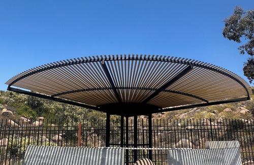 a small group among the patios, gazebos, bonfire with a nice nature view. Al outdoor facilities are shared by all