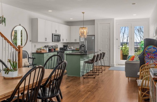 Escape to this enchanting Nashville retreat: Southern flair meets modern comfort. Only 5.5 miles from vibrant Broadway and 8 miles from BNA Airport, it offers a serene escape. Sleeping up to 8 guests, this haven features three bedrooms with a King and two Queens, plus a Queen sleeper sofa. Enjoy an open-concept kitchen and dining area with a record player and arcade game. The backyard oasis includes a hot tub and fire pit, perfect for relaxation. Uber and Lyft are easily accessible for exploring Music City. Please review house rules before booking.