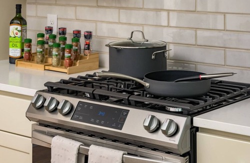 Prepare a quick snack or a large feast in the fully stocked kitchen. It features beautiful countertops and modern appliances with everything you will need to cook magnificent dinners.