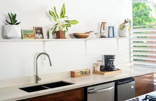 Todo nuestro hotel ofrece acceso a una hermosa piscina, una cocina totalmente equipada y una acogedora zona de estar donde puedes relajarte o reunirte. Cada una de nuestras cuatro habitaciones es privada, completa con su propio baño. Con lavandería en el lugar y a pocos pasos de impresionantes playas y increíbles restaurantes locales, tendrás todo lo que necesitas para una escapada sin preocupaciones y aventureras