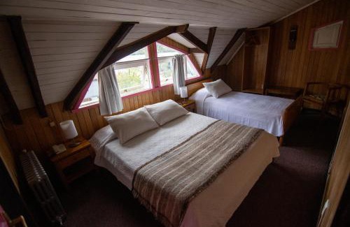 More than 30 years ago, the Hotel Unicornio Azul gave life to an old wooden house from the 20th century built in 1910. Since 1986 it has offered accommodations, a restaurant, a bar, free private parking and a garden. The Unicornio Azul Hotel is located on Avenida Pedro Montt on the waterfront and in front of the Fiordo de Castro. From the hotel, the historic center, the Plaza de Armas and the Church of San Francisco de Castro are 1969 feet away. The bus station is 1312 feet away and Mocopulli Airport 12 miles from the hotel. If planes travel to Chaitén, our hotel is located just a few steps from the maritime government and the ferry crossing that travels to the mainland. If you stay at Unicornio Azul you will find the Lillo Craft Fair and Farmer's Market just 1804 feet away, as well as the dock where boats set sail daily for tours of Castro Bay. The hotel is 3.1 mi from Nercón Church and 16 mi from Rilán Church. The nearest airport is Mocopulli Airport, 12 mi from Hotel Unicornio Azul. A continental buffet breakfast is served at the property. The hotel houses a lounge on the third floor. Six of its rooms include a balcony, the other rooms offer views of the garden. All the rooms at the Hotel Unicornio Azul de Castro are equipped with central heating, Wi-fi and TV. The bathroom is private and includes a shower, the hairdryer must be requested at reception.