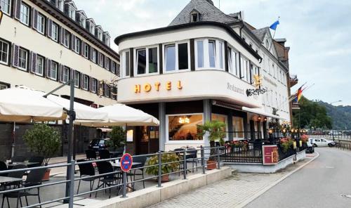 Located in Sankt Goar and with Rhein-Mosel-Halle Convention Center reachable within 22 miles, Hotel zum Goldenen Löwen has concierge services, non-smoking rooms, a shared lounge, free WiFi throughout the property and a terrace. Offering a bar, the property is located within 22 miles of Koblenz Electoral Palace. The property provides an ATM, and luggage storage for guests. At the hotel, the rooms have a closet. With a private bathroom equipped with a shower and free toiletries, some rooms at Hotel zum Goldenen Löwen also feature a city view. At the accommodation, the rooms are equipped with a flat-screen TV with satellite channels. Hotel zum Goldenen Löwen offers a buffet or continental breakfast. The area is popular for hiking and cycling, and bike rental is available at the hotel. Forum Confluentes is 22 miles from Hotel zum Goldenen Löwen, while Löhr-Center is 22 miles from the property. Frankfurt-Hahn Airport is 28 miles away.