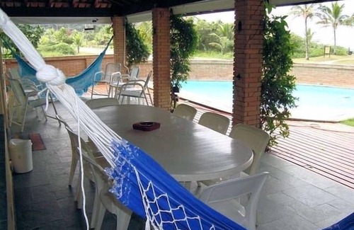 Very well maintained house, airy and by the sea, almost foot on the sand style. Wonderful and unpolluted beach, certified by Cetesb all year round. Calm street, with no traffic, in a preserved land and with private security 24 hours a day. There are all the utensils and domestic appliances necessary. Accommodation for 16 people. Big terrace by the sea, room with 4 environments: living room, dining room, game room and TV room with fireplace. Complete and independent kitchen and breakfast room, 3 refrigerators and one freezer. Maid´s house outside with bedroom, living room and bathroom. Covered garage for 1 car and space for 4 more. Heated pool and pressurized shower, both with beach view