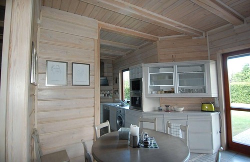 Year-round house by the sea in Dębki, 450 m to the beach entrance. Well-kept fenced plot of 1300m2, 5 parking places for guests on the fenced property. Log house (260m2), on the ground floor: kitchen, dining room, living room with fireplace, DVD, TV, bathroom, toilet, sauna, hall; on the first floor: bedroom with two single beds, three bedrooms with double beds, two bathrooms, hall.