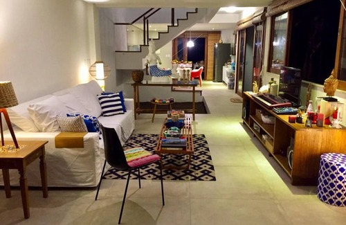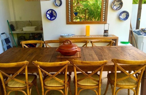 Hi, I'm the musician Flavio Venturini, owner of this house in Garapuá Bahia. Welcome! The home has amenities such as, internet with wi-fi router, Queen beds with 400 thread count Egyptian cotton sheets, plush and comfortable towels, electric showers in the 3 bathrooms, air conditioning and ceiling fan in the two upstairs bedrooms, spacious Brastemp refrigerator with freezer, 5 burner stove and gas oven, cooktop with electric stove and oven, hammocks on balconies, kitchen provided with soapstone pans brought from Minas Gerais, cast iron cookware and Tramontina steel cookware and a wide variety of utensils for those who like to cook, sandwich grill, blender, table fan, USB sockets in the bedrooms and living room, the furniture is a charm the part idealized and chosen by me, the design of the house is by Juca Gonçalves renowned architect of Salvador , the house is very well lit with led lamps being the ground floor illuminated through dots on the plaster ceiling, fabric curtains with blackout in the bedrooms and the living room and cook straw curtains from the local handicraft, As a composer and guitarist I leave in the house a Takamine Japanese steel guitar for those who like music and like to make a sound. A 40 'LED SmartTV. At the back of the house has living area with a lovely wooden table with 10 design chairs, a wooden deck also behind with a beach shower. Entrance gate with safe key, all lower doors and glass windows are what brings nature into the house. An indoor garden with skylight continues the concept of light house integrated into nature. Each room has its balcony with hammock being one facing the sea and the back facing a mangrove preserved full of trees. The house is situated in the left corner of the beach of Garapuá and is in front of the sea.
