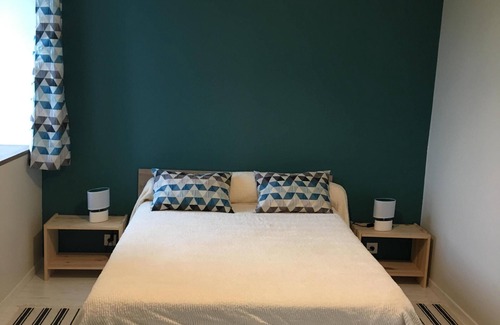 - 1 small bedroom with 1 140x190 bed (duvet), bed linen not provided