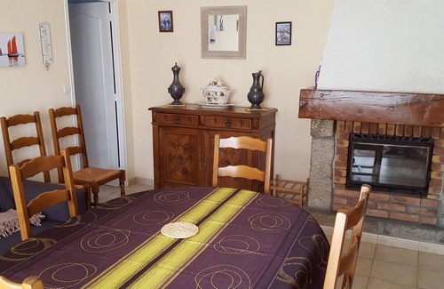 Halfway (400 meters) between the village and the beach house for 6 people with 3 bedrooms, kitchen, living room, bathroom, toilet, with fireplace and garden.
