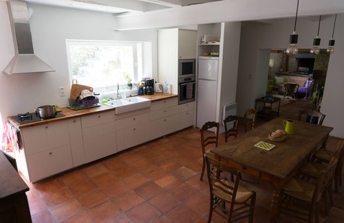 The kitchen is comfortably equipped. Large dining room for meals. Fair organized around the old baker's oven (unfortunately not working) and the fireplace (functional). Three rooms are available, two rooms have views over the vineyards, with direct access to the outside, the first very large (30 m²) hosts a double bed and 2 single beds. The second (20 m²) a double bed + cot if necessary. A third smaller room on the mezzanine above the living room has a double bed.