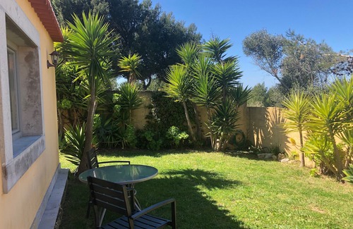 VILLA PALHA-GUINCHO is a cozy isolated Villa (80 m2) with a private garden of 400 m2, inserted in a 12,000 m2 property, with a countryside horizon of local vegetation and pine trees, where you can hear the waves and the birds.