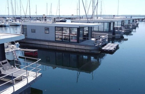Enjoy your vacation on a houseboat with the whole family or slow down with good friends - far away from stress and everyday life. This inviting houseboat (no license required) is a floating holiday home and has its fixed, stationary berth on the Baltic Sea in the Marina Boltenhagen in the Weißen Wiek. People like to spend their holidays here if they love the sea and the beach. You can be on the water and still be close to the mainland. Above all, vacationing on a houseboat means being direct and in tune with nature. When the weather is nice, you can enjoy the sun on the cozy terrace or on your own sun deck. On cooler days, the air-conditioned and comfortably furnished houseboat with its 3 interior rooms offers all guests plenty of opportunities to retreat. There is a bathroom with a separate toilet. In addition, the heating ensures a cozy atmosphere on board even on cold days. The glass facades in the living and dining area flood the interior with sufficient daylight, increasing the feeling of freedom and closeness to nature, but can be shaded at any time if required. Highlights included: WiFi, all consumption-based energy costs Activities nearby: Boltenhagen is located with its well-kept beaches on one of the most beautiful stretches of coast on the Baltic Sea. Excursion boats depart from the pier in Boltenhagen and head for the island of Poel, Wismar and various locations on the Schleswig-Holstein coast. In the Butterfly Park Klütz you can marvel at many different types of tropical butterflies. If the weather doesn't play along, simply visit the Wonnemar adventure pool in Wismar, about 11 kilometers away. Wismar is not only a Hanseatic city but also a UNESCO World Heritage Site. Characterized by the port and fishing, lovingly restored town houses, market square and many cafés and restaurants, the lively city is a wonderful destination for young and old.