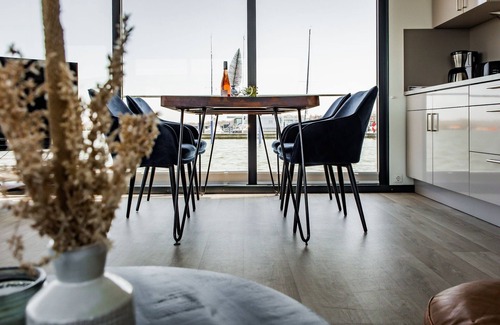 Relaxation on the water - floating holiday home - completely renovated in 2023 - with that certain something: The modern and high-quality furnished floating house is firmly anchored in the small city harbor of Ribnitz-Damgarten. Enjoy 360-degree views of the water and harbor while having breakfast on the patio. The additional great lounge terrace on the roof invites you to linger in the bright sunshine. After just a few hours you will feel pure relaxation. The houseboat itself inspires with loving interior design and generous equipment. With the canoe belonging to the houseboat you can explore the area on the water. Or jump straight from the terrace into the cool water. Afterwards you can end the evening on the sofa and let the sunset on the horizon work its magic on you. Escape the stress of everyday life and slow down on this dreamlike houseboat. Ribnitz-Damgarten is not only a state-recognized resort, but is now known everywhere as an amber town, because both the German Amber Museum and the amber show manufactory are located here. The picturesque little town lies between the Hanseatic cities of Rostock and Stralsund - directly at the mouth of the Recknitz in the Ribnitzer See. Various restaurants and cafés as well as shops of all kinds and several contemporary witnesses of brick Gothic make up the very special charm of the place. The proximity to the Baltic Sea beaches is also attractive. Highlights included: All consumption-dependent energy costs WIRELESS INTERNET ACCESS Activities nearby: Around Ribnitz-Damgarten you will find beautiful forests and moors, fields and meadows as well as long avenues with old trees - a wonderful region for cyclists. The best way to get to know the idyllic region is on varied tours to the Bodden or to the Baltic Sea or to one of the many castles. Explore the landscape protection area "Lower Recknitztal" or visit the Fre