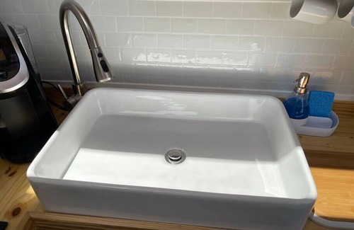 -Kitchenette with mini refrigerator, Keurig coffee maker, microwave, induction stove top, toaster