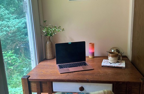 On 5 private, wooded acres, but only 2 miles from Millerton, one of the cutest towns in the Hudson Valley. Amazing food, fun shops and antiques, hiking, swimming, all within 15 minutes. The house is a labor of love—a 70's-style cabin with cork floors and vintage furniture and a record player (but don't worry there's wifi and all the modern stuff too, including laundry). There's cooking equipment and books and other stuff to make you feel at home. And only 20 minutes to the MetroNorth to NYC.