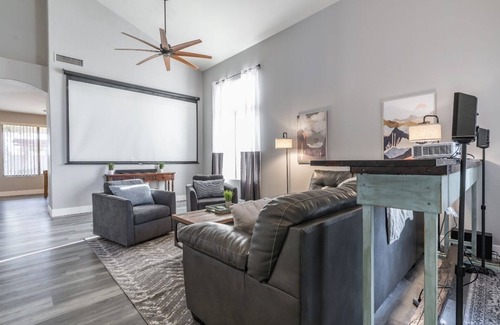This home has it all! Pool, Movie theater, games, fire pit , workspace and comfy beds! Located a few minutes from the Goodyear ballpark, Phoenix raceway and Cardinals stadium, this home is the perfect place to make and create memories with your family and friends! Home sleeps up to 8 people, with possibility to accommodate more if needed.