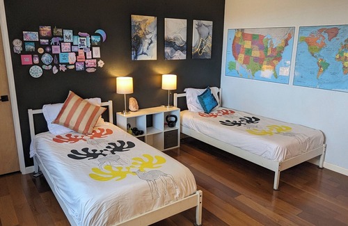 This 4 bedroom, 3.5 bath modern house is a perfect spot for 1-2 families to use as a home base for a Bay Area visit. Or for a family to enjoy for an extended stay during the summer. Available mid-June to mid-August 2024, with discount for longer stays. Includes multiple outdoor dining options, patios, gardens, waterfall, hot tub, pool table, movie theater, etc. Comes with free use of a Volvo XC90 SUV: get around in style without needing to rent a car (seats 7, insurance covered, discuss details separately).