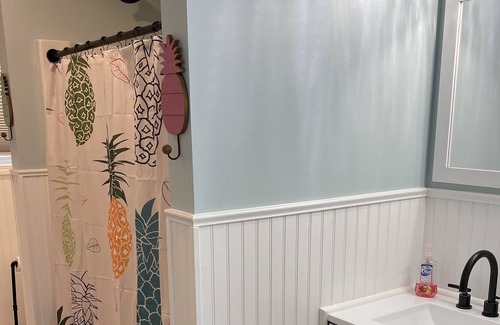 This 4 bedroom house is newly renovated with a master suite that not only overlooks the lake, but has a sliding door that opens to a private patio. Master bedroom includes a king bed, private bath, tv and large sliding door access to lakeside patio. Second bedrooms include a twin bunk bed and tv. The third has full over full bunk, twin trundle and a crib for your littlest traveler. The 4th bedroom includes a queen bed, tv and closet with games and puzzles for your enjoyment.