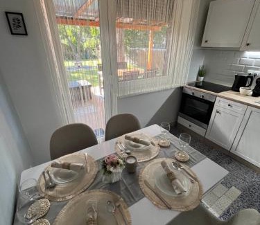 Hugo Residence is a recently renovated vacation home in Hajdúszoboszló where guests can make the most of the garden and barbecue facilities. The air-conditioned accommodation is 1.2 miles from Aquapark Hajdúszoboszló. There's an outdoor fireplace and guests can use free Wifi and free private parking. Providing a terrace with garden views, this vacation home also offers a cable flat-screen TV, a well-equipped kitchen with an oven, a microwave, and a toaster, as well as 2 bathrooms with a walk-in shower. This vacation home is non-smoking and soundproof. Hajduszoboszlo Extrem Zona is a 13-minute walk from the vacation home, while Istenszülő Oltalma Görögkatolikus Templom is 1.7 miles away. Debrecen International Airport is 12 miles from the property.